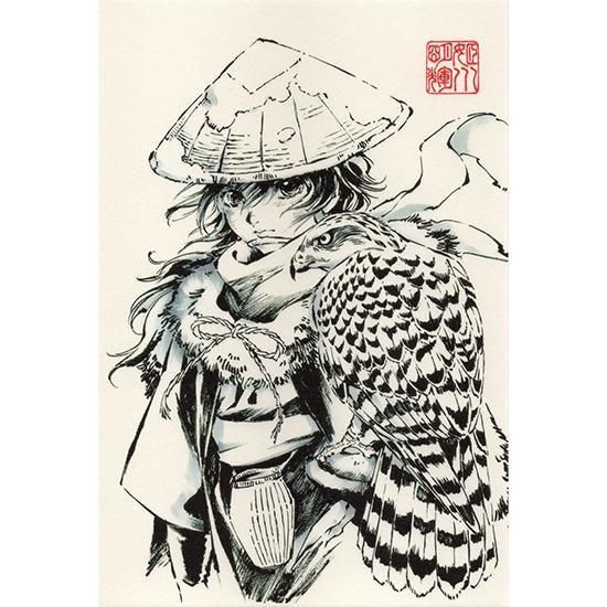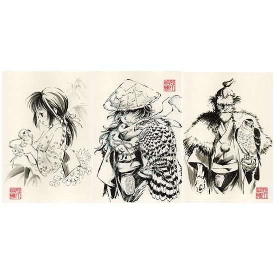 〈鷹娘〉シリーズより「小さきもの」「娘鷹匠」「老鷹師」の3枚が1つのセットになりました。
