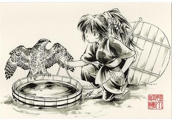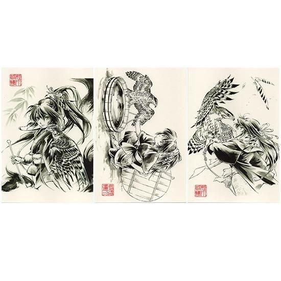 〈鷹娘〉シリーズより「習作/鷹娘(参」「行水」「仰ぐ」の3枚が1つのセットになりました。