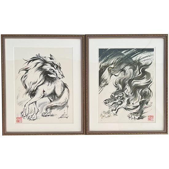 「阿」と「吽」の対になった狼絵 2点セット