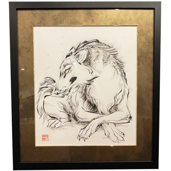「阿」と「吽」の対になった狼絵 2点セット